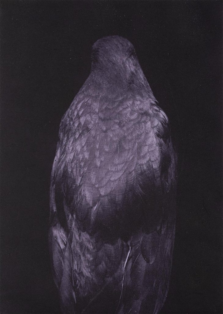 From this, Witteveen started photographing mounted birds in museums, shown from behind as if they were human portraits. Her work asks: what happens when birds disappear? How do they remain in our collective memory? The project explores birds as both natural and cultural heritage, threatened by habitat loss and intensive farming. Through photography, etching, and collaborations with artists, writers, activists, and scientists, she connects art, ecology, and heritage.